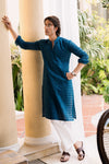 Teal Blue Embroidered Kurta with Boot Cut Trouser